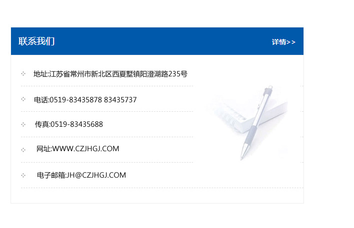 地址:常州市新北區友邦商務大廈1幢16、17層  電話:0519-85101652  傳真:0519-85112595  郵編:213022  網址:www.cz-jiayue_cn.dxys168.com  郵箱:xiajifengaa@163.com